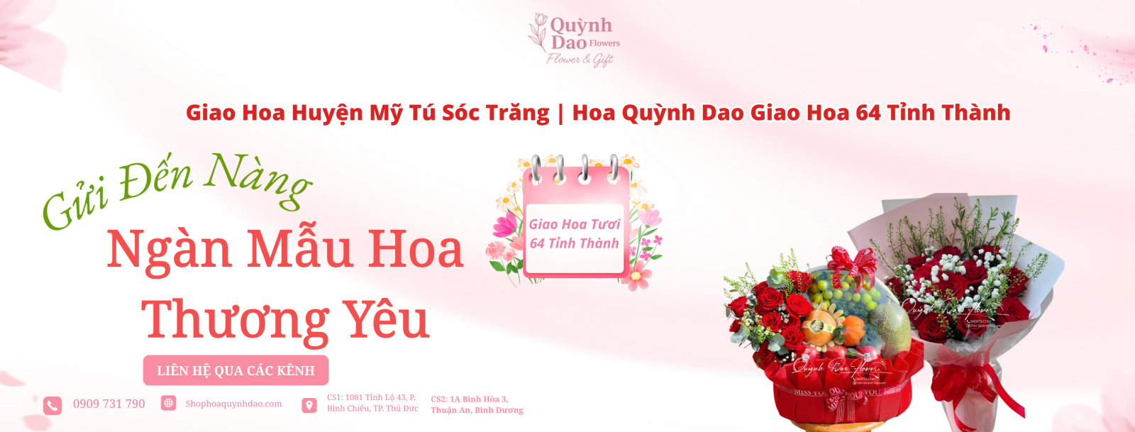 Với kinh nghiệm, hệ thống giao hoa 64 tỉnh thành và các mẫu hoa nổi bật được khách hàng tin chọn, Hoa Quỳnh Dao là địa chỉ phù hợp cho nhu cầu giao hoa Huyện Mỹ Tú – Sóc Trăng. Dù là hoa chúc mừng, giỏ hoa cao cấp hay giỏ trái cây ý nghĩa, mỗi sản phẩm đều mang đến giá trị trọn vẹn cho người tặng và người nhận.