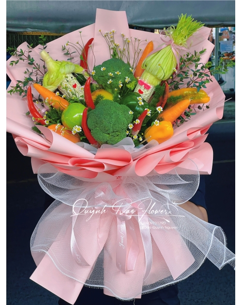 Bó hoa rau củ độc lạ – ý tưởng mới lạ, được nhiều khách hàng yêu thích.