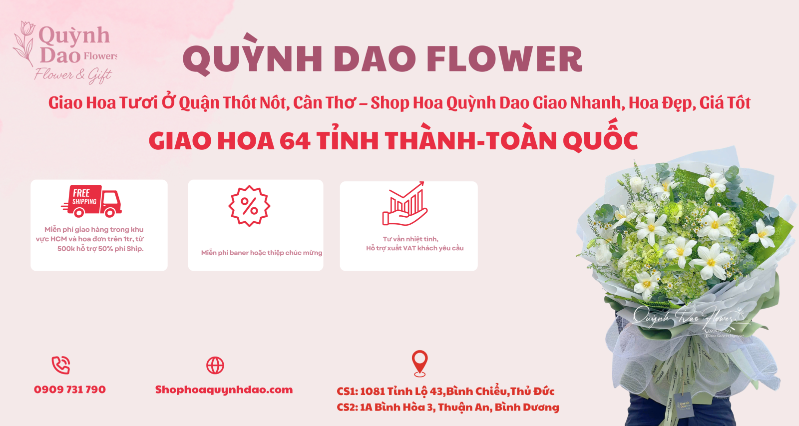 Nếu bạn đang tìm nơi giao hoa tươi tận nơi tại Quận Thốt Nốt, Cần Thơ, thì Shop Hoa Quỳnh Dao là lựa chọn uy tín hàng đầu. Với kinh nghiệm lâu năm trong lĩnh vực hoa tươi và nghệ thuật cắm hoa, chúng tôi cam kết mang đến những mẫu hoa đẹp, sang trọng, thể hiện trọn vẹn thông điệp yêu thương trong từng dịp đặc biệt.