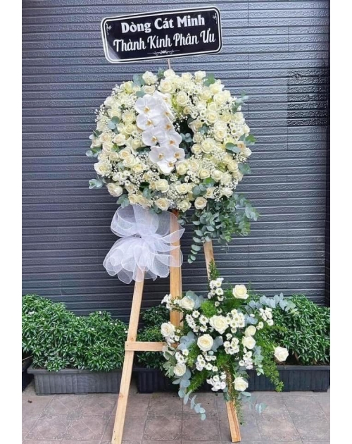 Vòng hoa tang lễ trang trọng, bày tỏ sự sẻ chia và tiếc thương