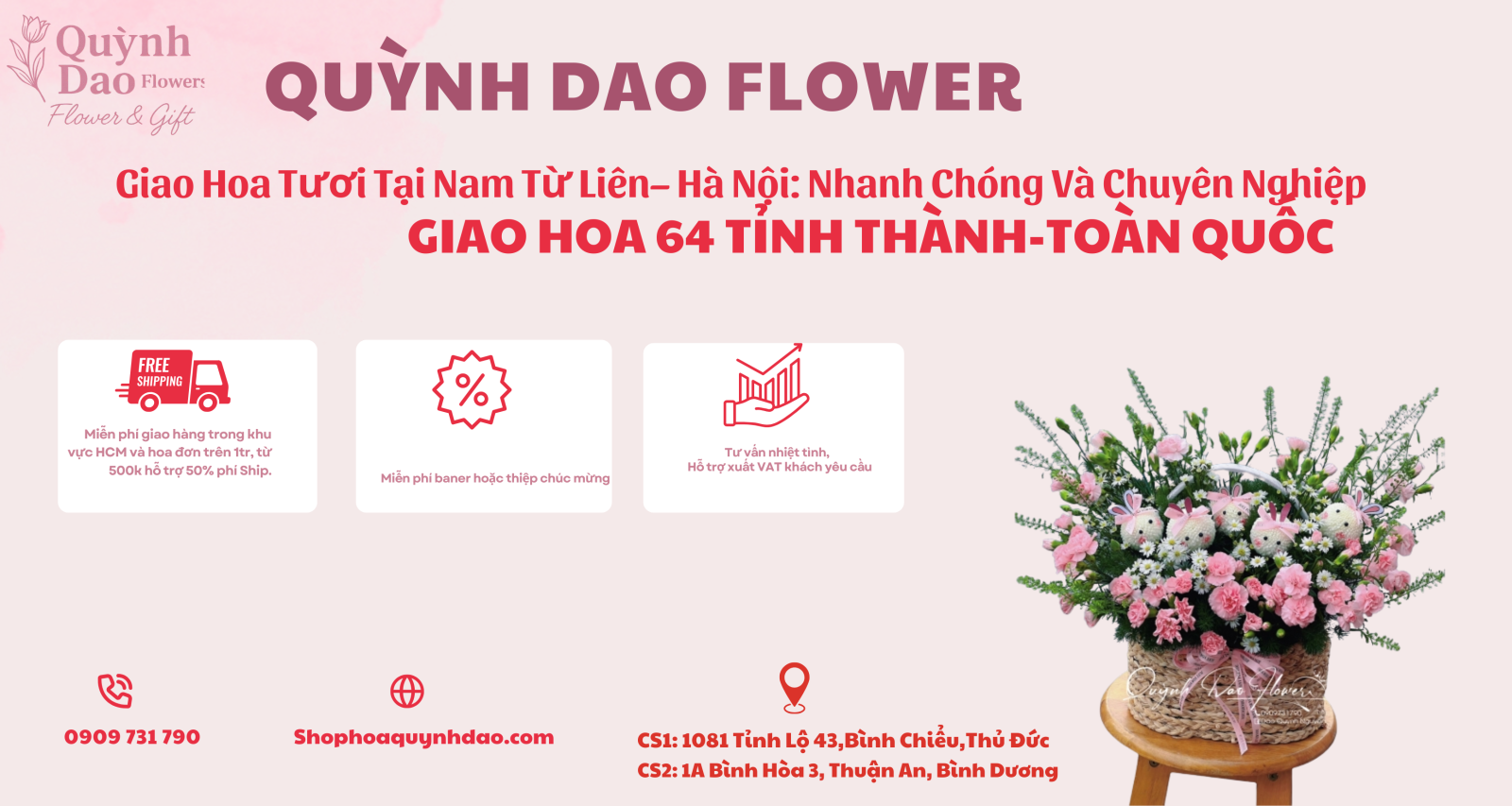 Với dịch vụ chuyên nghiệp và uy tín, Hoa Quỳnh Dao tự hào mang đến cho khách hàng tại quận Nam Từ Liêm và toàn Hà Nội những trải nghiệm mua hoa trọn vẹn, tinh tế và đầy cảm xúc.