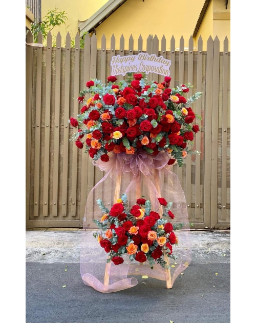 Kệ khai trương màu đỏ 2 tầng hiện đại to đẹp