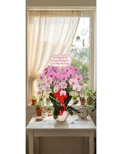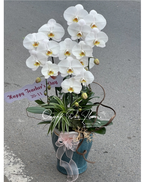 Chính vì vậy, các mẫu lan hồ điệp chúc mừng luôn nằm trong top sản phẩm bán chạy tại Shop Hoa Quỳnh Dao.