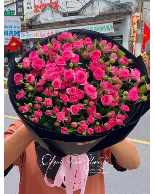 Với hơn hàng trăm đóa hồng tươi được bó cầu kỳ theo dáng tròn, điểm nhấn là lớp giấy gói sang trọng – đây chính là mẫu hoa được lựa chọn hàng đầu cho các dịp tỏ tình, kỷ niệm, sinh nhật hoặc lễ đặc biệt.Tone đỏ quyền lực – kiêu sa, khiến người nhận không khỏi xúc động bởi sự đầu tư và chân thành của người tặng.